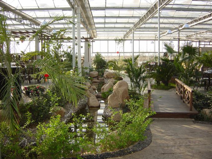 解决方案,决定在景区入口左侧建设一座景观温室,经过改观后游客络绎不绝,游客不但一年四季都能观赏到草花,还可以在景观温室内高端的环境下就餐,休闲,感受园林景观和文化创意的有机结合。